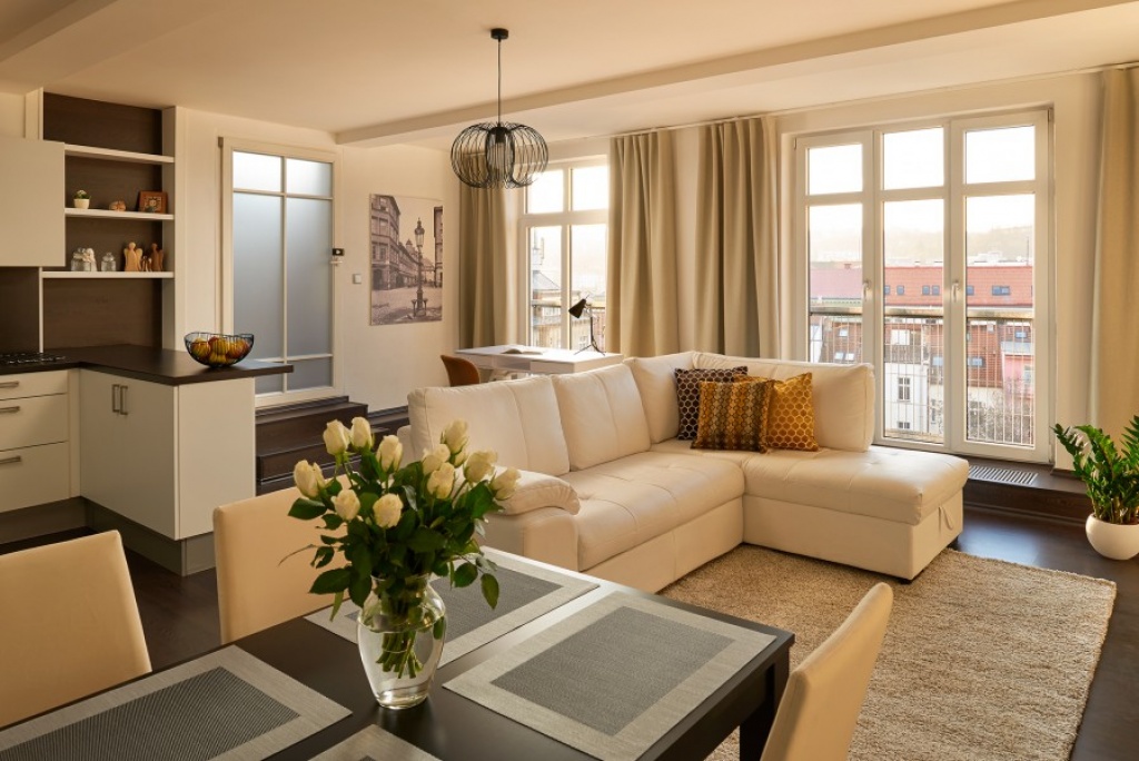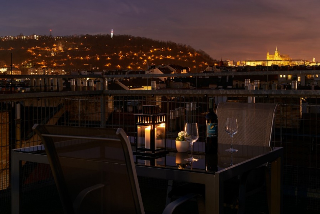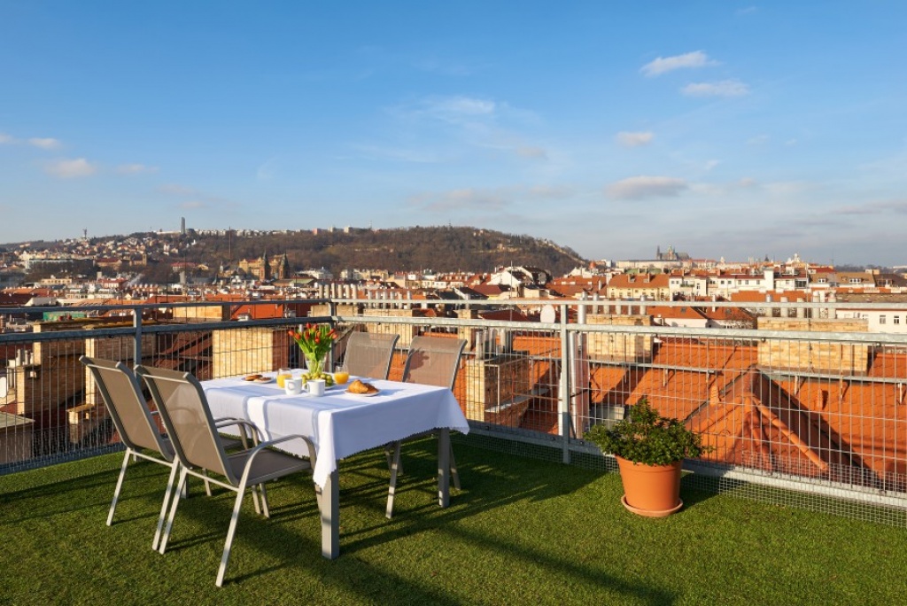 Tento dvoupokojový byt s nádhernou terasou je určen ke krátkodobým pobytům turistů v Praze.