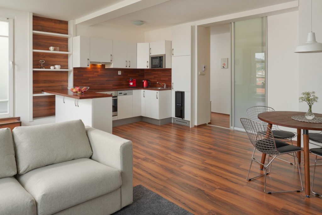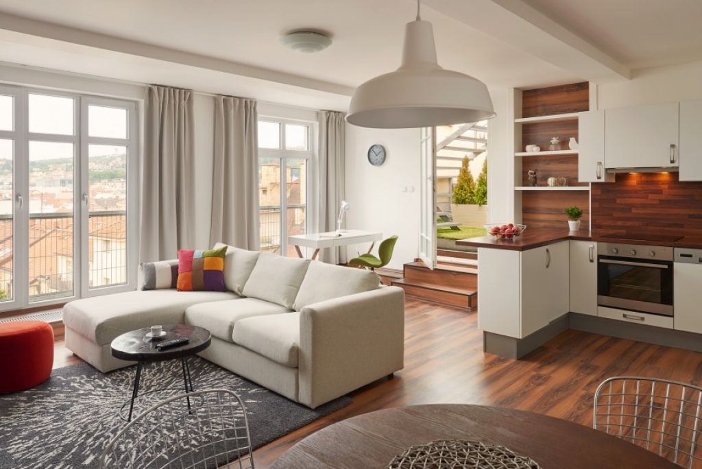 Předmětem projektu byl opět dvoupokojový byt s prostornou terasou s nezapomenutelným výhledem na Prahu.