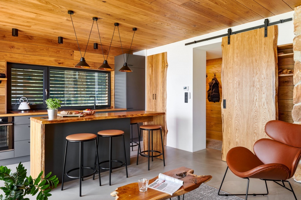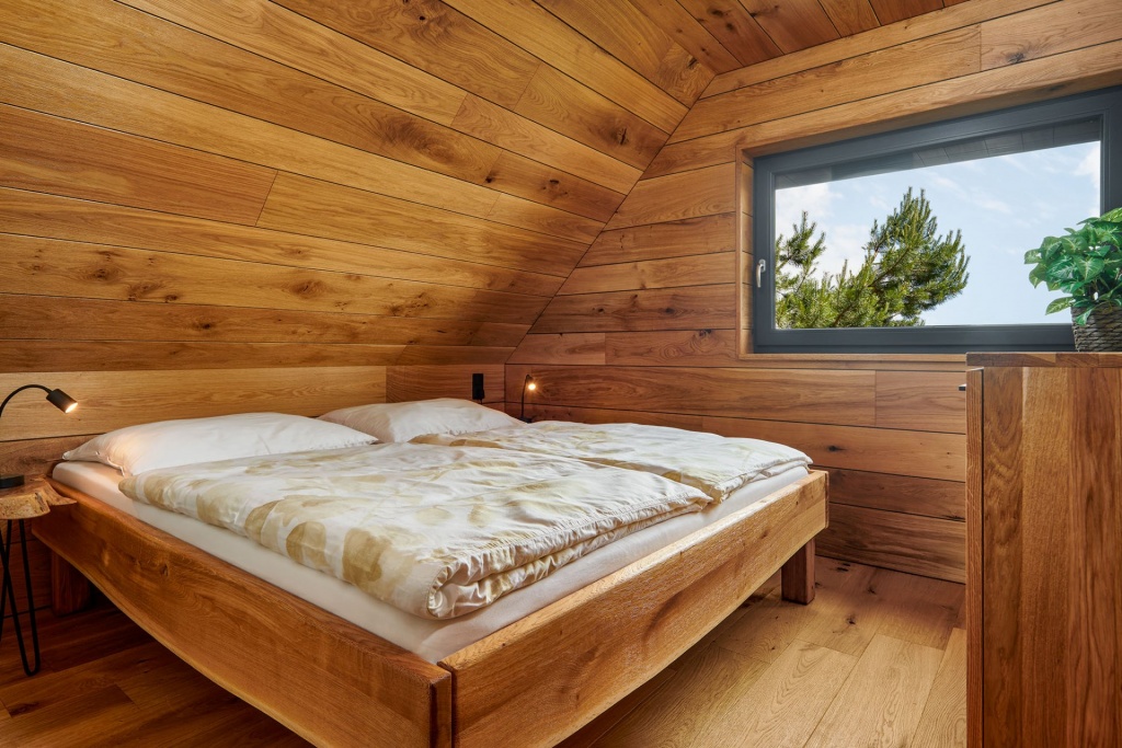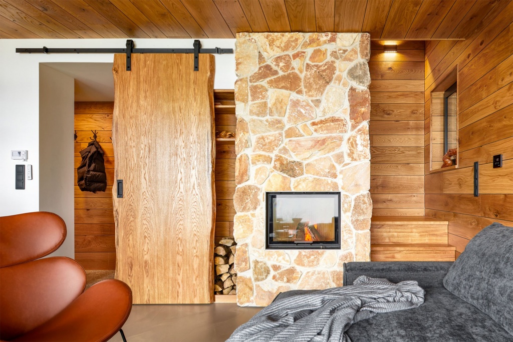 Chata po prarodičích měla již své nejlepší roky za sebou a vyžadovala kompletní rekonstrukci. Po dlouhém zvažování bylo nakonec majitelem rozhodnuto, že místo rekonstrukce, která by si vyžádala značné finanční náklady, ale přinesla by pouze kompromisní výsledek, postaví chatu zcena novou. Klient, který na tomto místě trávil své dětství, chtěl však zachovat ducha původní stavby. Smrkové palubky, které dominovaly v celém interiéru původní chaty, byly nahrazeny přírodním dubem, krbová kamna vystřídal moderní krb s výměníkem, záclony a závěsy nově zastoupily předokenní elektrické žaluzie. Jediné, co z původní stavby zůstalo, je dechberoucí výhled do okolní krajiny.