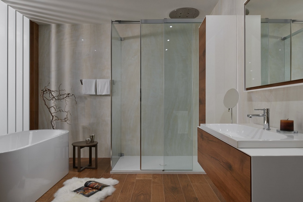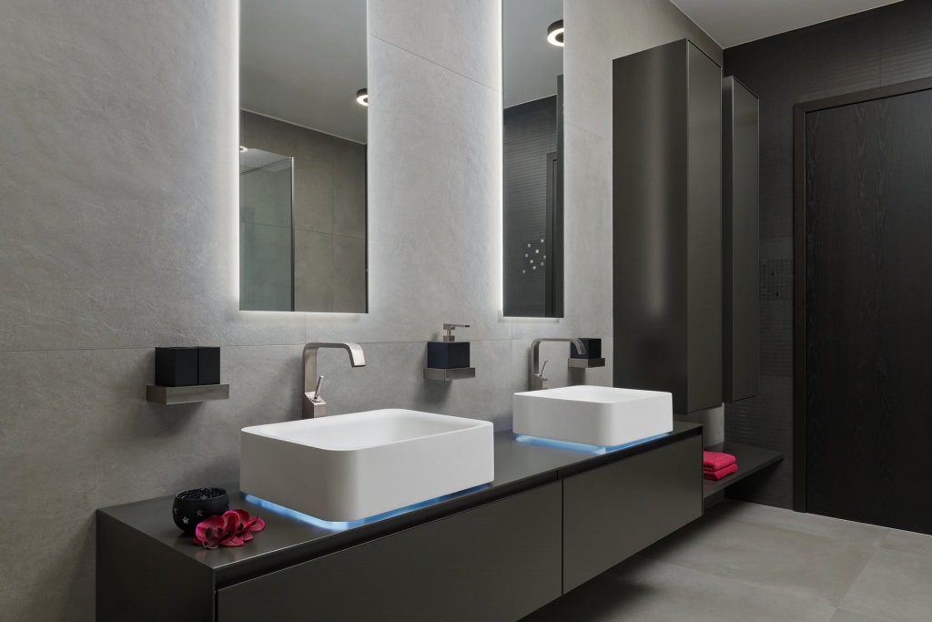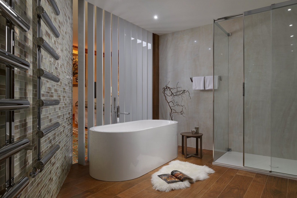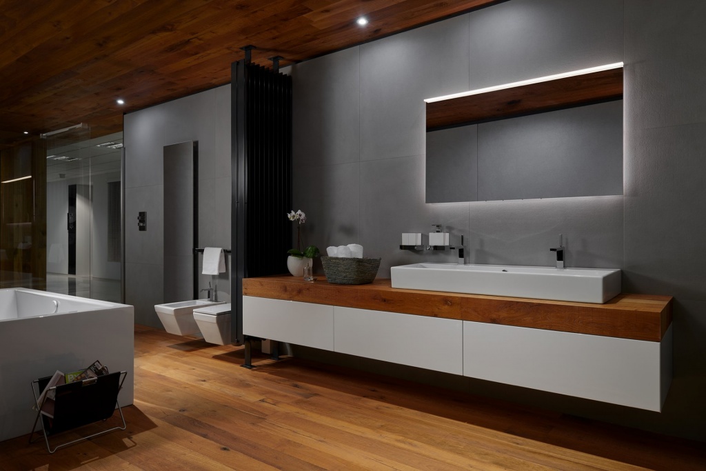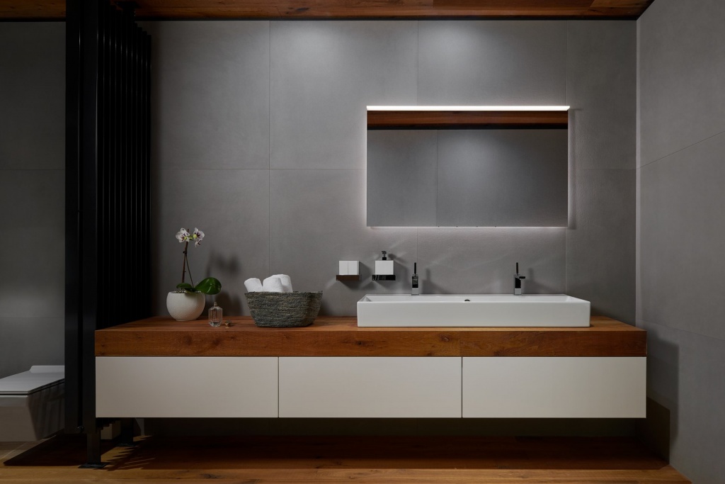 Foto staging, koupelny Elements, showroom Hanák Forum PrahaCílem úprav bylo koupelny oživit a navodit atmosféru domácího prostředí. Foto: Tomáš Mach, www.tommachphoto.com