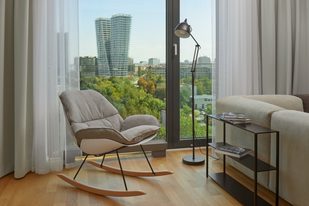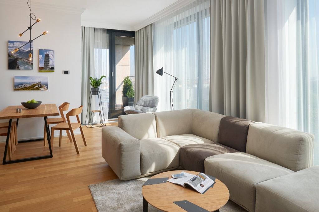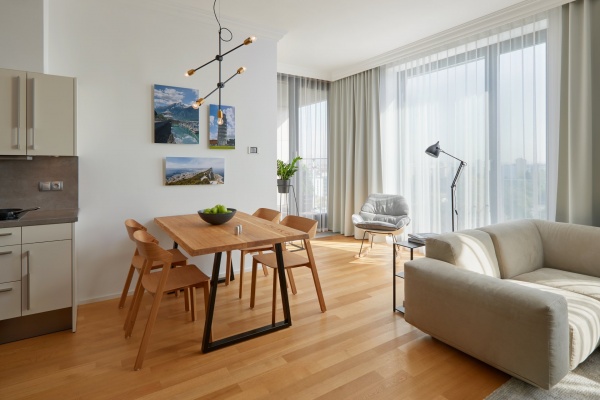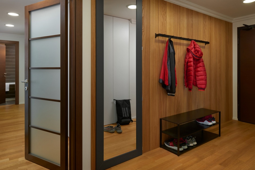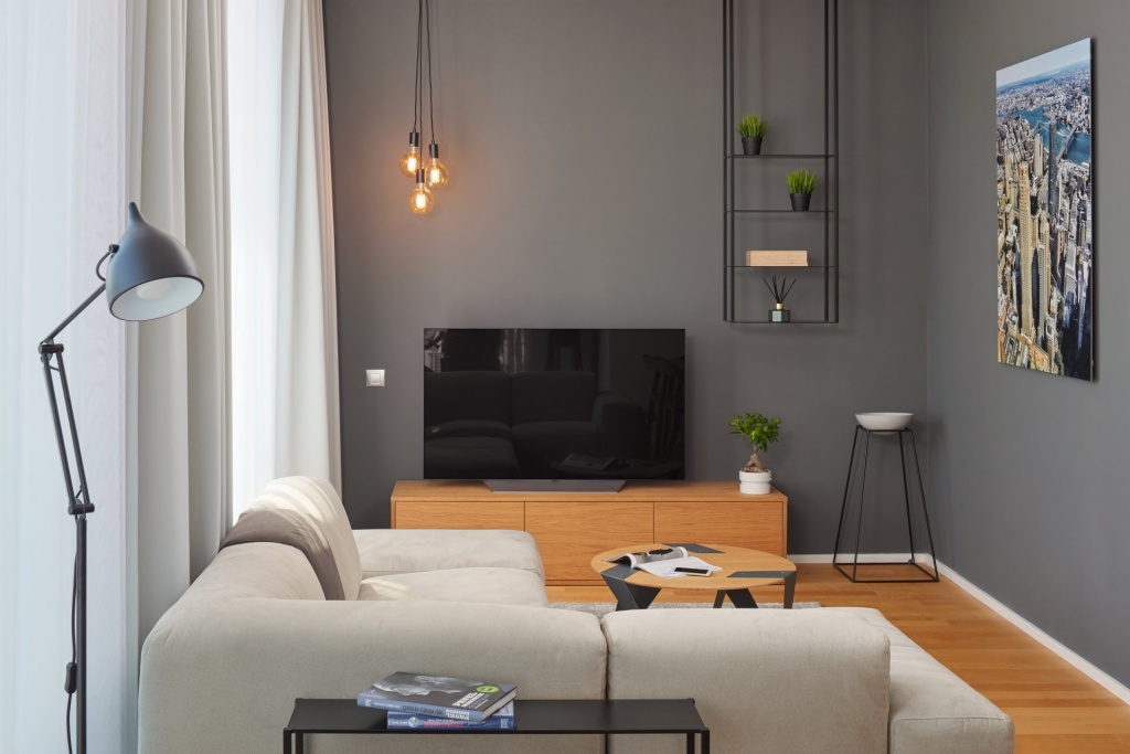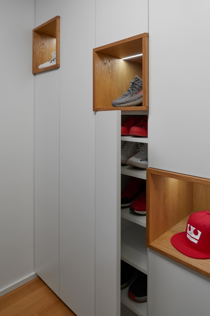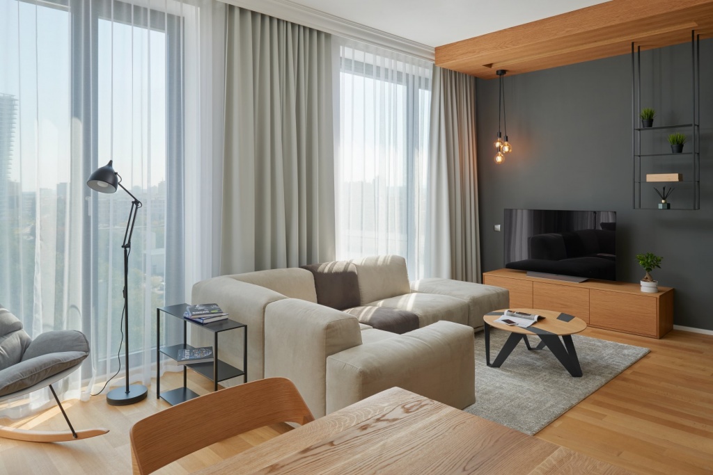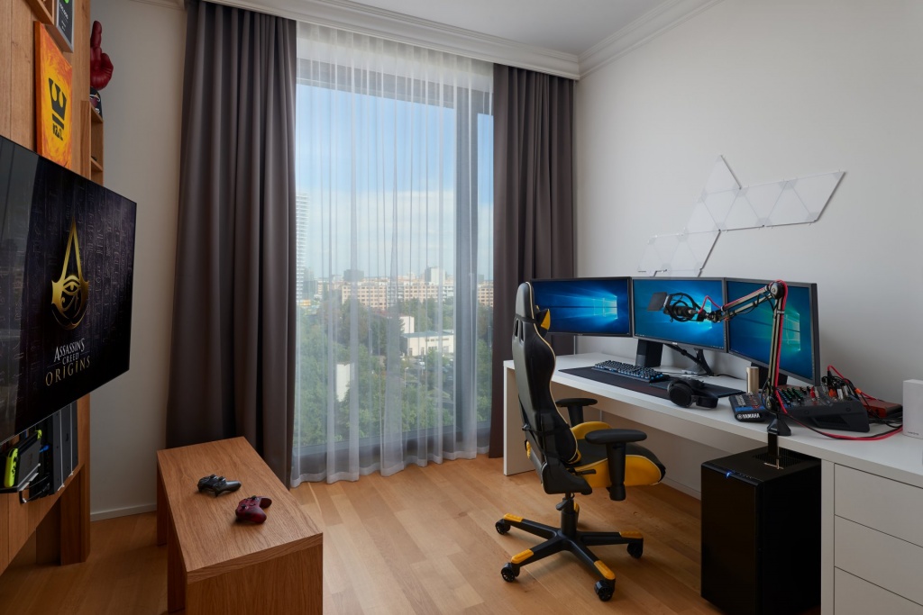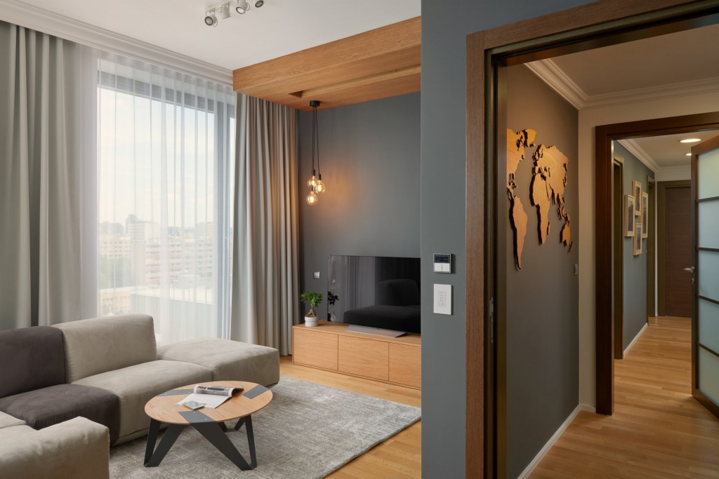 Návrh a realizace tohoto bytu byl velkou výzvou, jelikož součástí mělo být i nahrávací studio určené pro tvorbu YouTube videí. Základními prvky návrhu se staly dřevo a kov.
