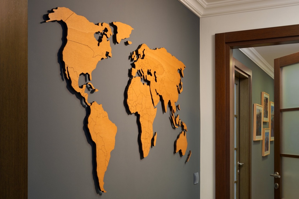 Jedním z klientových požadavků bylo umístění plátna pro domácí kino v prostoru obývacího pokoje. V konceptu návrhu se promítl velký koníček klienta - cestování. Fotografie, které klient při svých cestách pořídil, se staly nedílnou součástí interiéru ve formě velkoformátových obrazů.