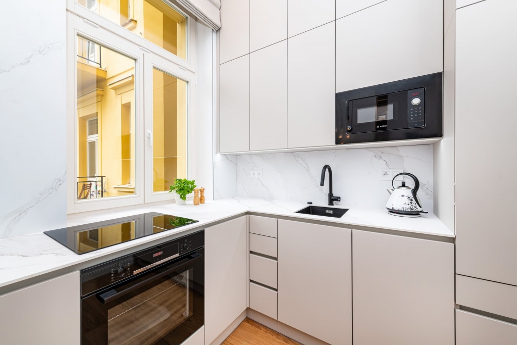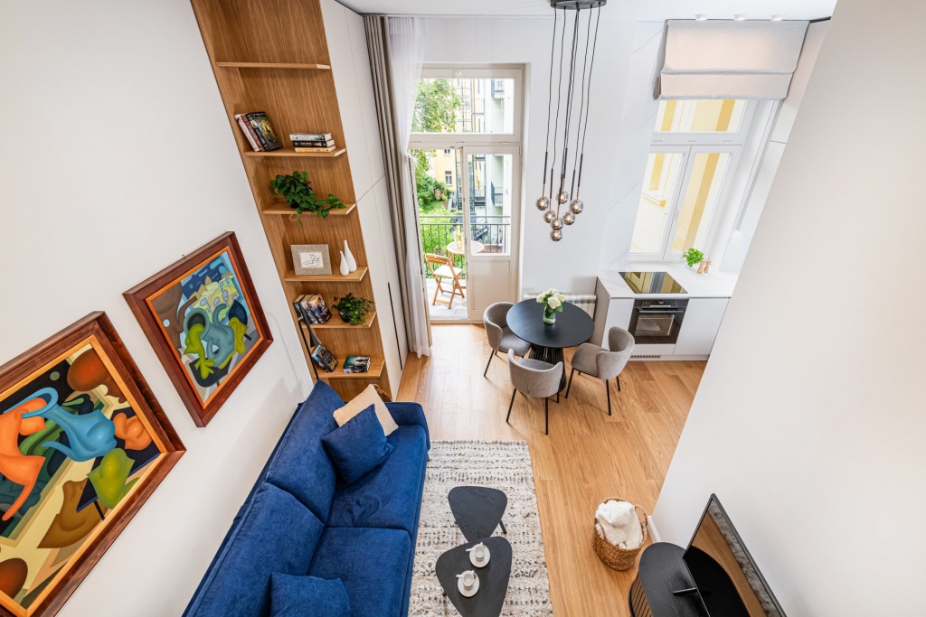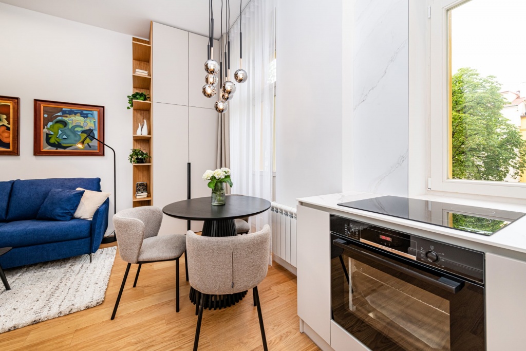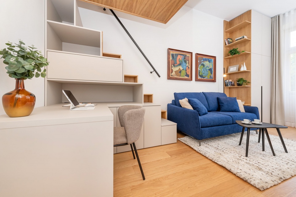 Navrhnout jednopokojový byt v historické zástavbě pražských Vinohrad je vždy dialogem mezi minulostí a současností. V tomto projektu jsme dostali za úkol vytvořit plnohodnotné bydlení na omezené ploše, které bude funkční, nadčasové a zároveň citlivé k charakteru domu i lokality. Majitelé bytu si přál interiér, který bude působit klidně, vzdušně a nebude podléhat krátkodobým trendům. Důraz byl kladen na kvalitní materiály, chytré úložné prostory a jasné vymezení jednotlivých funkcí – spánku, práce, vaření i odpočinku.