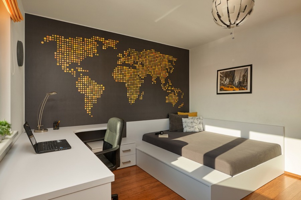 Čtrnáctiletý chlapec se zájmem o zeměpis, cestování a počítačové hry toužil po moderním studentském pokoji s prostorným lůžkem.